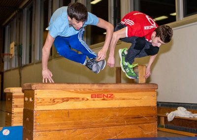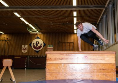 Bevor die Extremsportler jedoch diese anspruchsvollen Bewegungen ausüben und sich diversen Herausforderungen stellen können, gilt es zunächst die Grundlagen zu verinnerlichen. Diese werden den „traceurs“ bereits ab acht Jahren vermittelt. Eine Trainingseinheit für die zukünftigen Hindernisläufer gestaltet sich hierbei wie folgt, wie uns Marco Weimar schildert: „Wir haben ungefähr fünf verschiedene Spiele, die wir am Anfang so machen. Gerade um spielerisch zu starten und den Kindern auch einfach die Lust daran zu geben. Danach kommt der Part, in dem wir Expertise einbringen, wo wir spezifische Bewegungsformen üben. Es gibt so ein paar grundlegende Bewegungsmuster, die für den Parkour wichtig sind. Zum Beispiel die Hindernisüberwindung, die Sprungpräzision von einem Punkt A zu einem Punkt B oder auch die Balance, die ganz wichtig ist. Weil sich das die Kinder immer wieder gewünscht haben, haben wir außerdem auch künstlerische und turnerische Aspekte mit eingebaut, beispielsweise Überschläge oder auch Salti.“